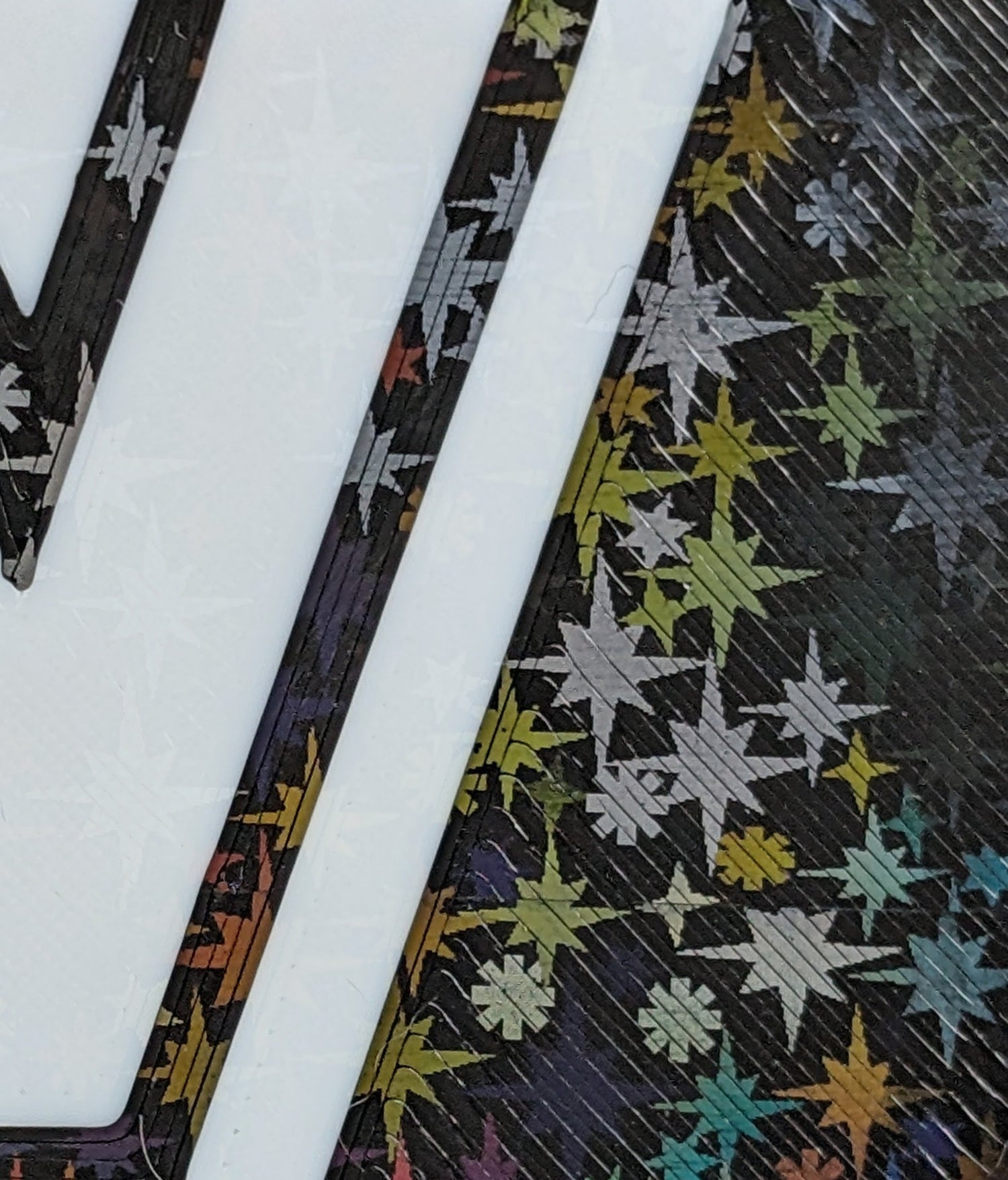 Alle vores minis er 3d printet og kommer ikke uden lidt linjer her og der. Men det giver os også mulighed for at lave vores unikke glitter front. Som lader minien fange lyset og afspejle et stjerne mønster.